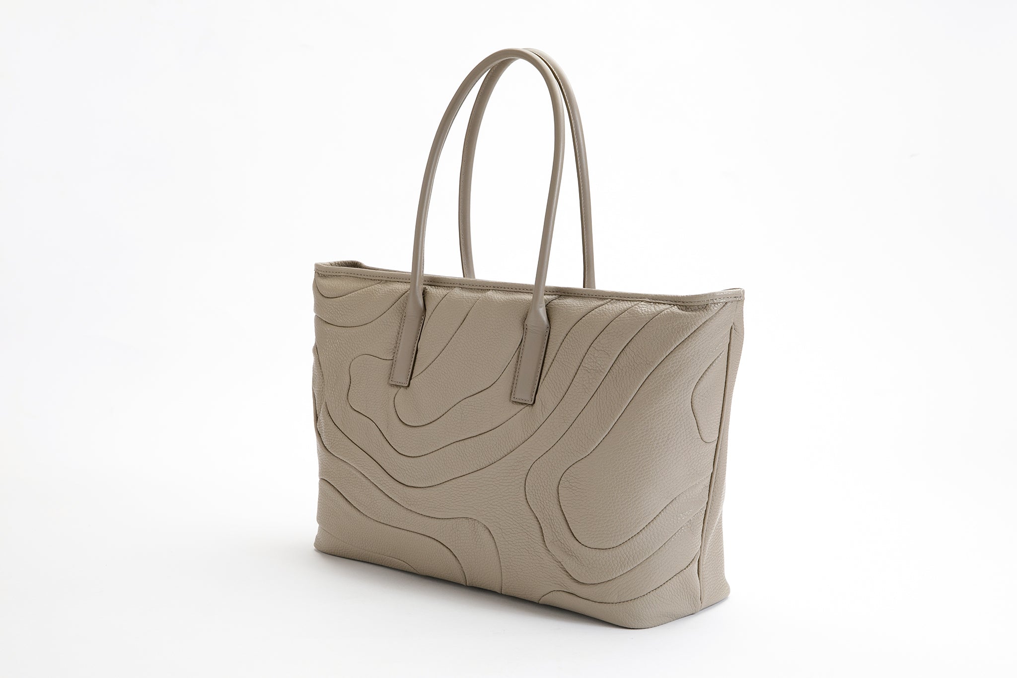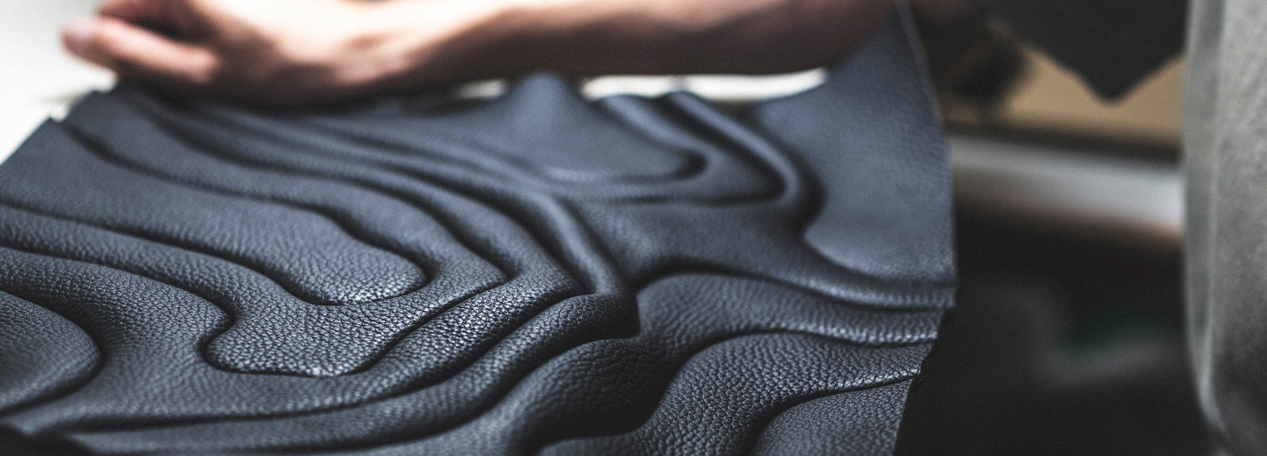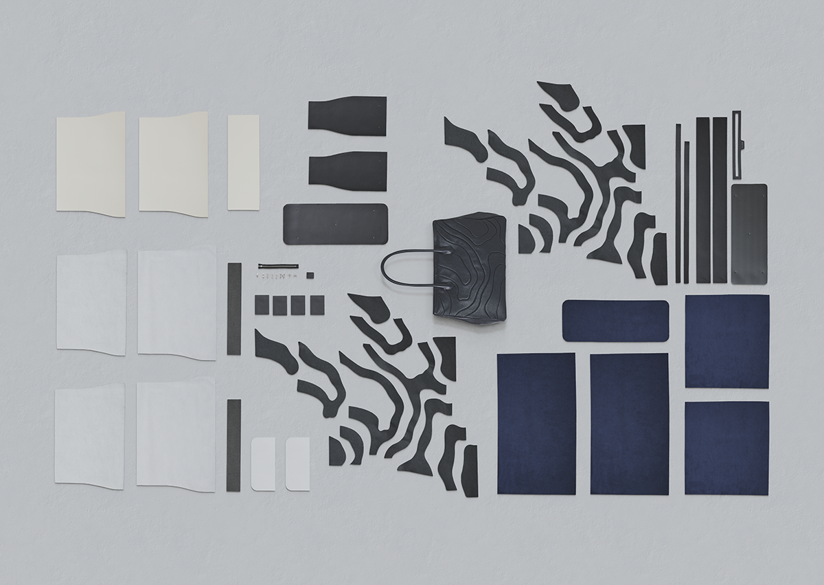 あえて複雑にカッティングしたレザーを丁寧に縫いつなぐことで生まれる曲線美。